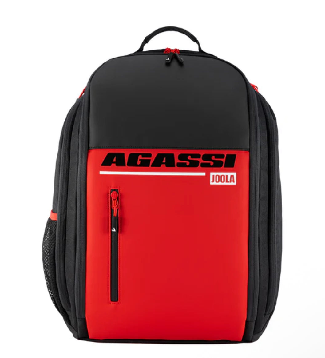 Hit the court in style with the JOOLA Agassi Vision II backpack. Perfect for carrying all your pickleball equipment and daily essentials. Pack your game-worn shoes in the ventilated shoe compartment, and safely store your keys and phone in the hidden interior zippered pocket. Whether you're heading from the office to the court or anywhere in between, the Agassi Vision backpack is your ultimate doubles partner. Go out and play!