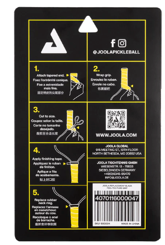 Re-connect to your game with JOOLA Feel-Tec Pure Replacement Grip. Available in white, gray, or black, the grip’s soft, tacky surface improves handle feel, reduces paddle fatigue, and absorbs moisture, helping you maintain a secure connection to your paddle in high-pressure matches. Packs come with two black JOOLA Trinity logo rubber bands and clear instructions for easy application. Each roll is long enough for paddles with extended handles like the Hyperion but can be easily trimmed for smaller paddle handles like the Magnus.