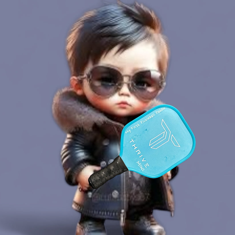 The Thrive Mini Paddle is the perfect gift for a newborn baby. This is not a toy but rather a keepsake item for your child. Measuring 8 inches by 4.25 inches this mini paddle is constructed like a regular paddle with a PP core, colored edge guard, and a soft PU leather grip. This paddle is not intended for actual play.